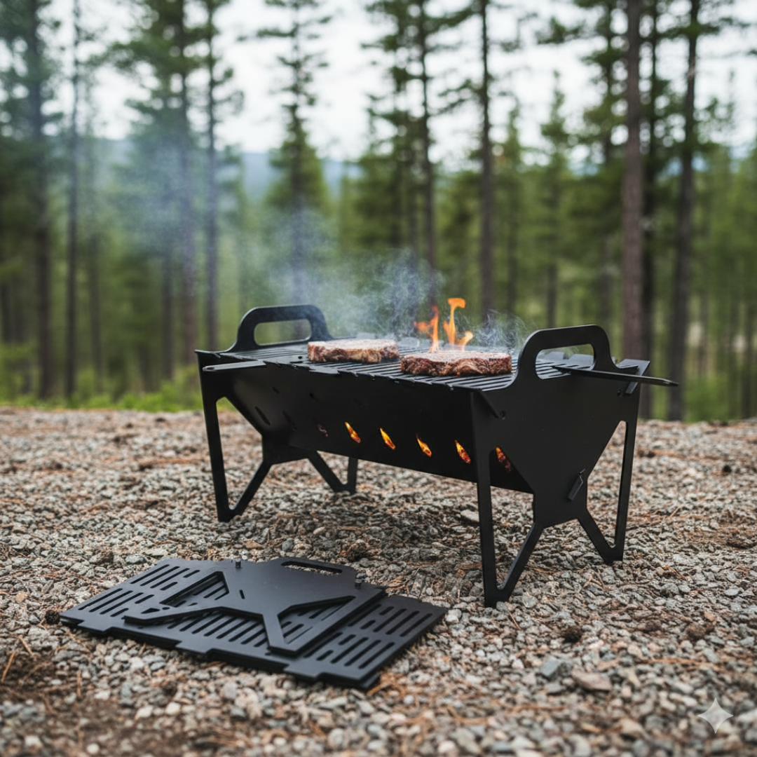 Eu costumava odiar levar churrasqueira para acampar por causa do volume e da bagunça O fato de não precisar de ferramentas para montar é um bônus gigante. Churrasco de verdade em qualquer lugar!