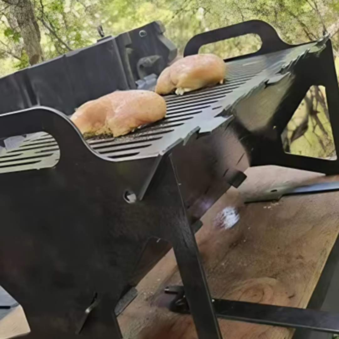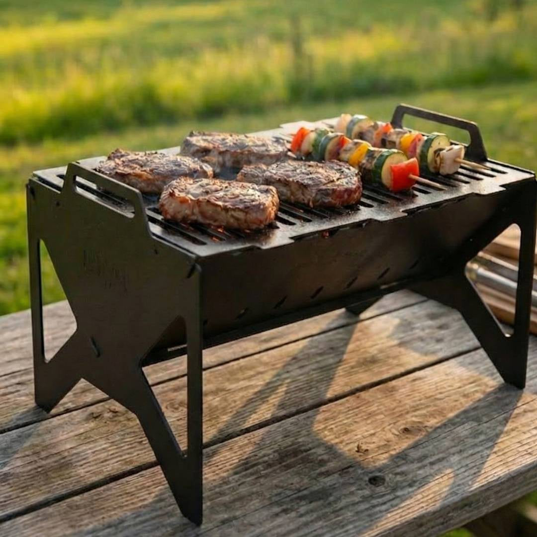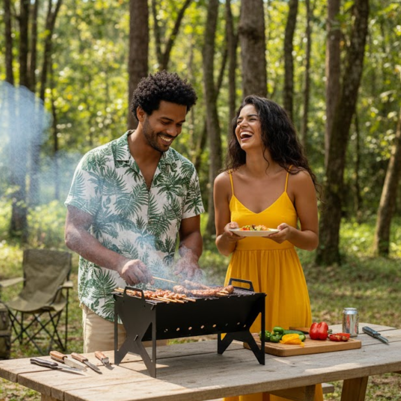 Eu costumava odiar levar churrasqueira para acampar por causa do volume e da bagunça O fato de não precisar de ferramentas para montar é um bônus gigante. Churrasco de verdade em qualquer lugar!
